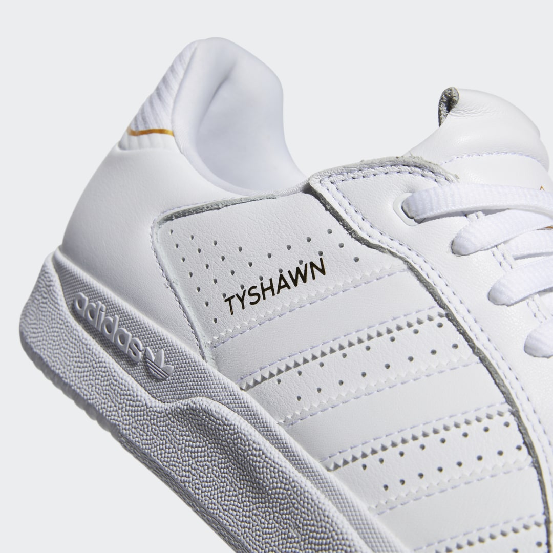 Der Tyshawn Jones Signature-Sneaker punktet jetzt mit einem Low-Top-Update aus Leder in Triple White. Er bleibt der legendären Silhouette treu und kommt mit einem Obermaterial aus hochwertigem Leder. Die Adituff Verstärkungen im Zehenbereich und die Cupsohle garantieren dir Strapazierfähigkeit, Komfort und Kontrolle übers Board – Tech-Features fürs Skaten dürfen schließlich auch nicht fehlen.