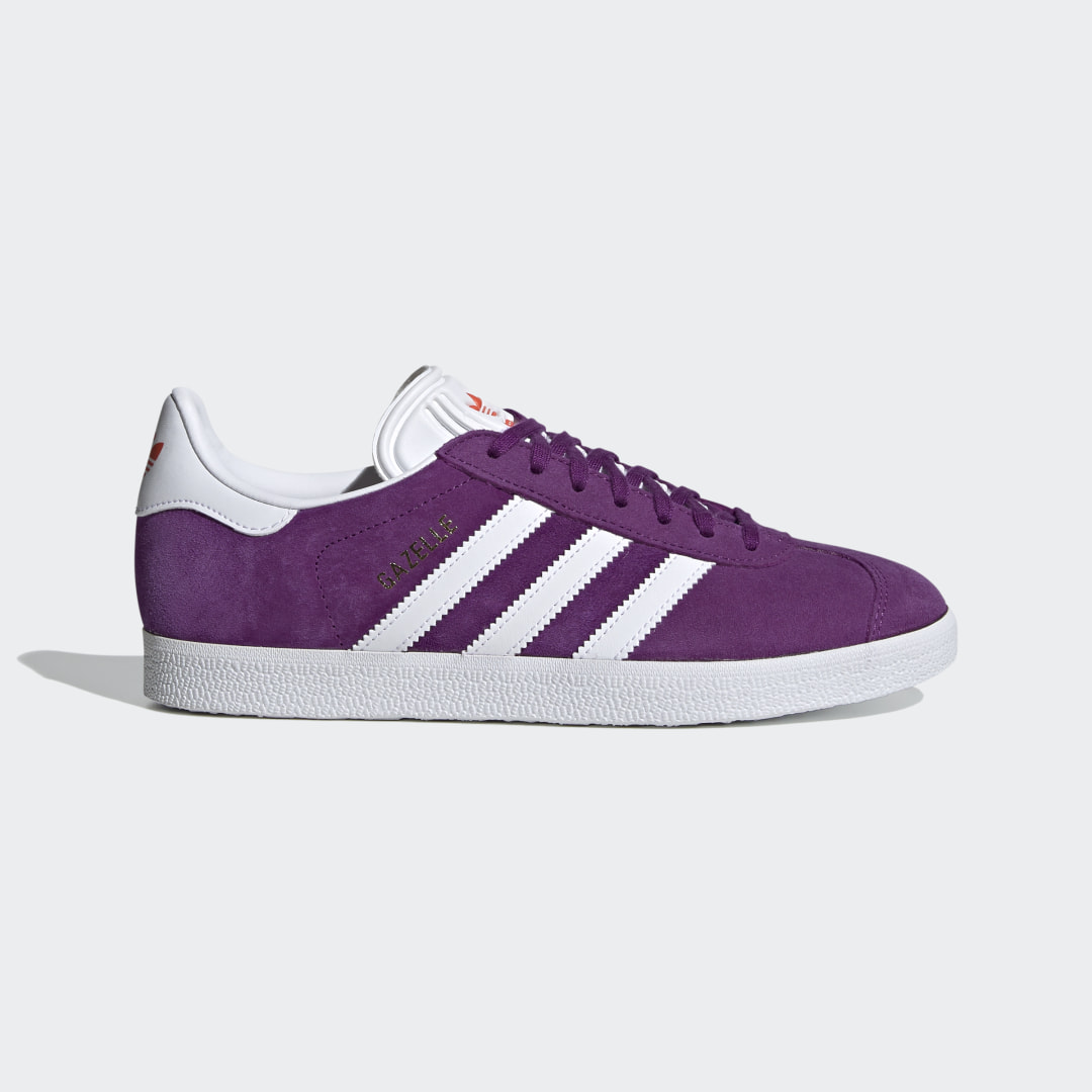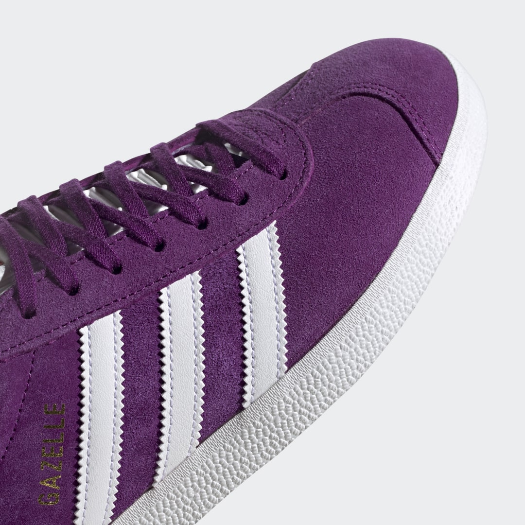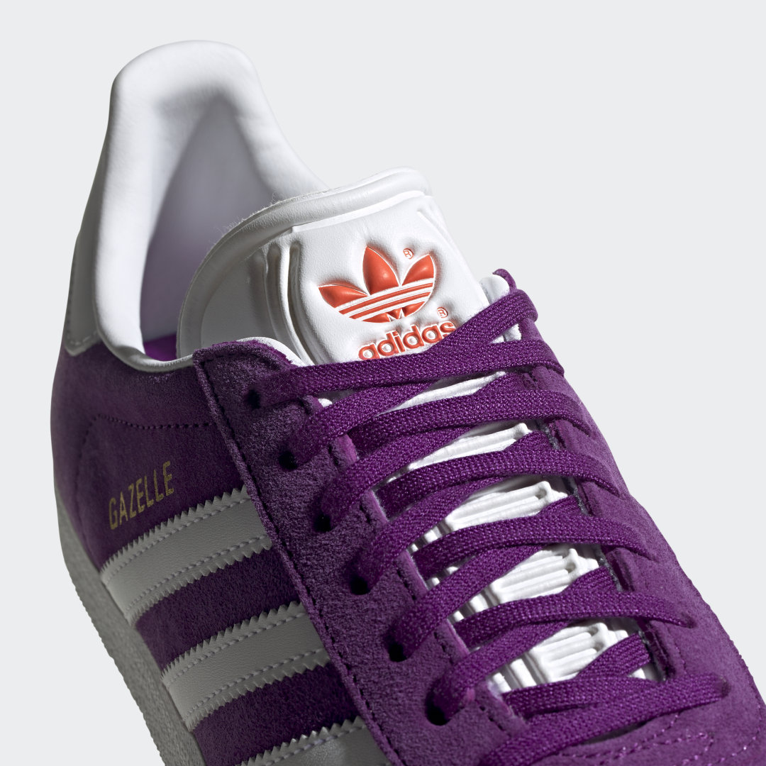 Dieses Design beamt dich zurück in die 90er! Diese Version der adidas Gazelle ist vom Original von 1991 inspiriert. Sie hat ein Obermaterial aus weichem Wildleder in einer leuchtenden Farbe, auf der die kontrastierenden, weißen 3-Streifen besonders gut zur Geltung kommen. Der „Gazelle“-Schriftzug als Goldfolienprint rundet das Ganze ab.