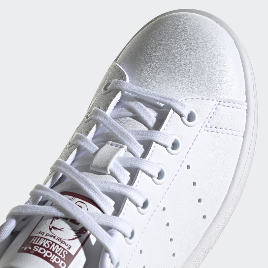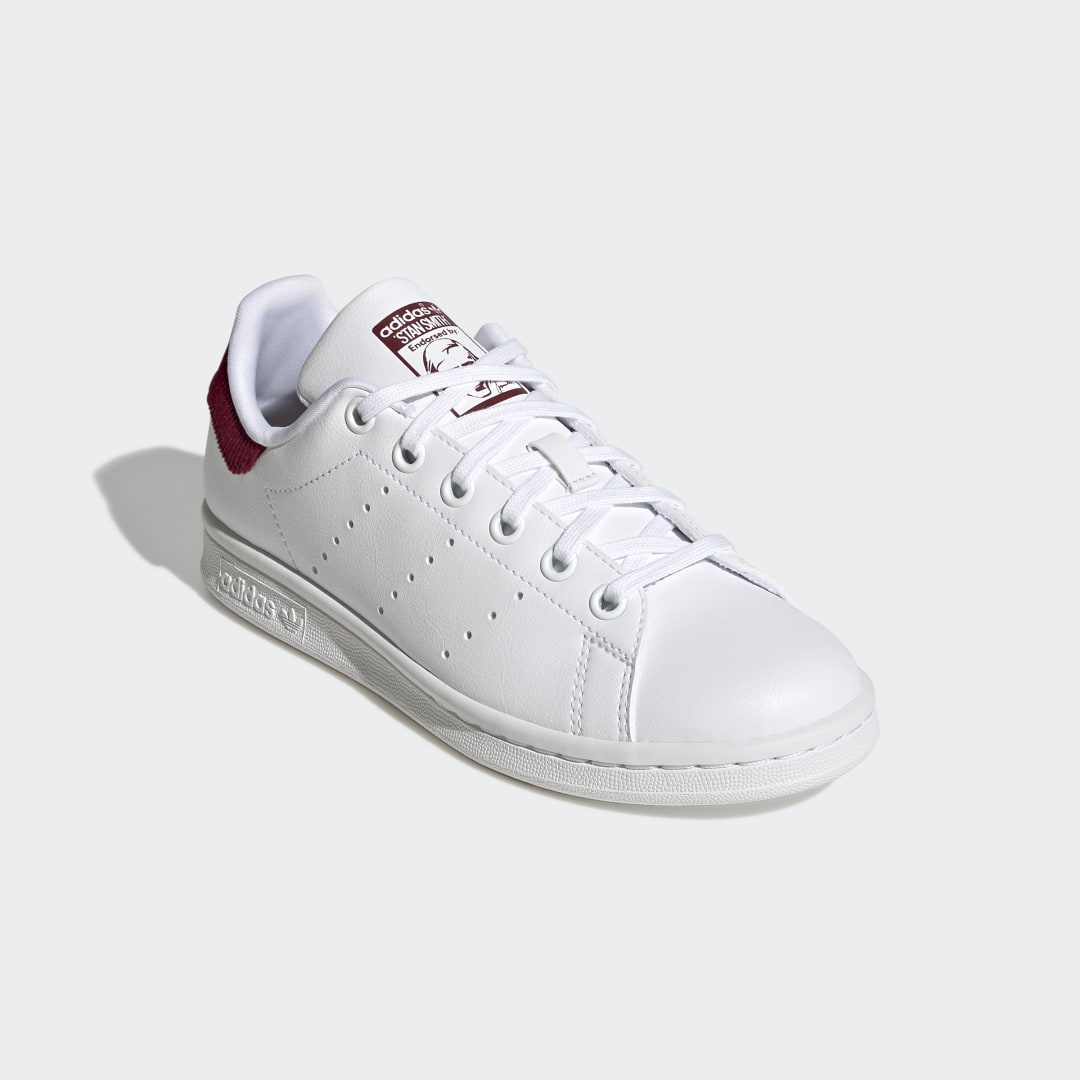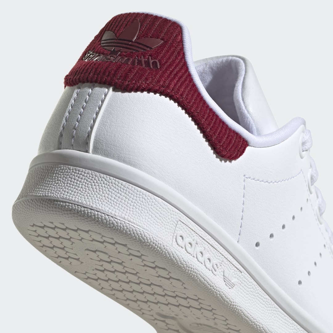 Dieser adidas Stan Smith für Kinder und Teens ist super vielseitig und lässt sich easy stylen. Egal ob schick oder lässig – lass deiner Fantasie einfach freien Lauf. Mit seinem cleanen, minimalistischen Look passt er einfach zu allem, was dein Kleiderschrank zu bieten hat – ein echtes Must-have eben. Das Detail im Fersenbereich aus Cord verpasst dem Design außerdem dezenten College-Vibe. Das Obermaterial ist aus einer Reihe von recycelten Materialien gefertigt und hat einen Recycling-Anteil von mindestens 50 %. Dieses Produkt ist nur eine unserer Lösungen im Kampf gegen Plastikmüll.