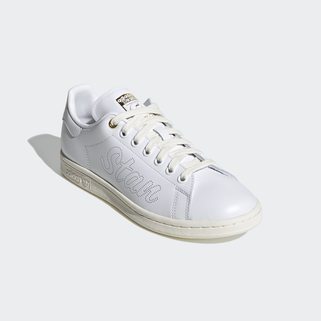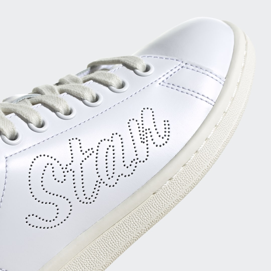 Sagt dir der Name Stan Smith etwas? Bringst du ihn vielleicht mit Sneakers in Verbindung? Ursprünglich ist Stan Smith ein zweifacher Grand-Slam-Gewinner, der in den 70ern für Aufsehen auf den Tennisplätzen sorgte. Heute bringt man ihn vor allem mit einem der beliebtesten Sneaker von adidas in Verbindung. Über die Jahre haben viele Künstler und Designer diesen minimalistischen Klassiker ihre Handschrift verpasst. Diese Version sorgt mit perforierten Schriftzügen – „Stan“ auf der einen und „Smith“ auf der anderen Seite – für einen verspielten Look.