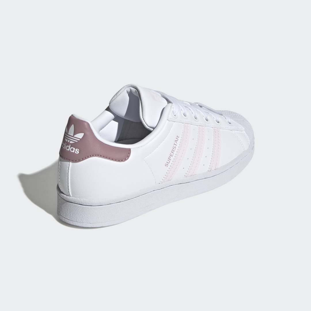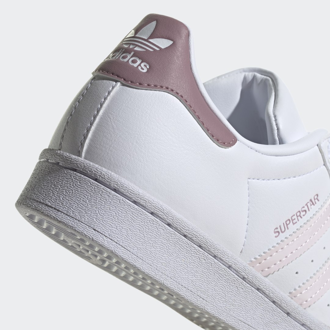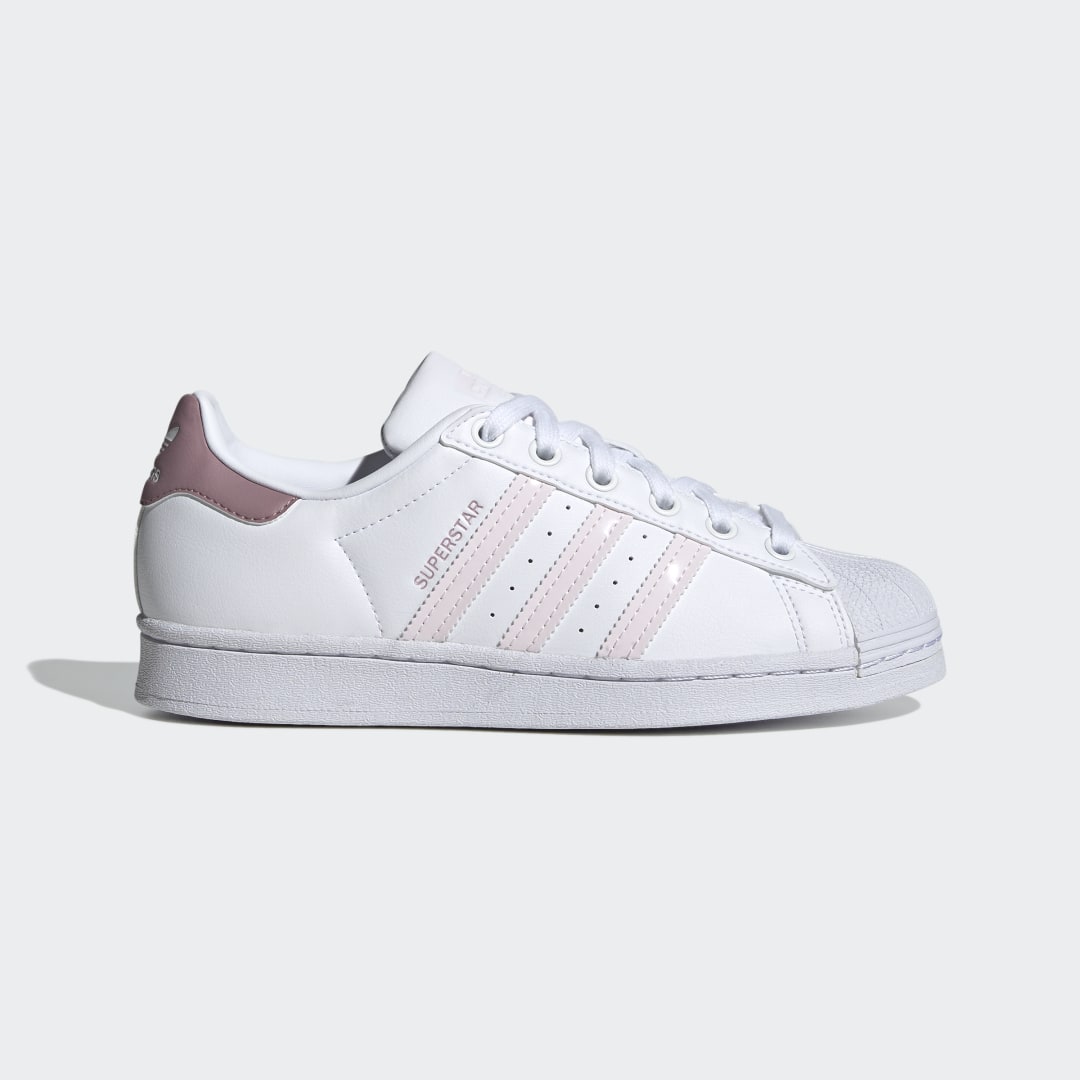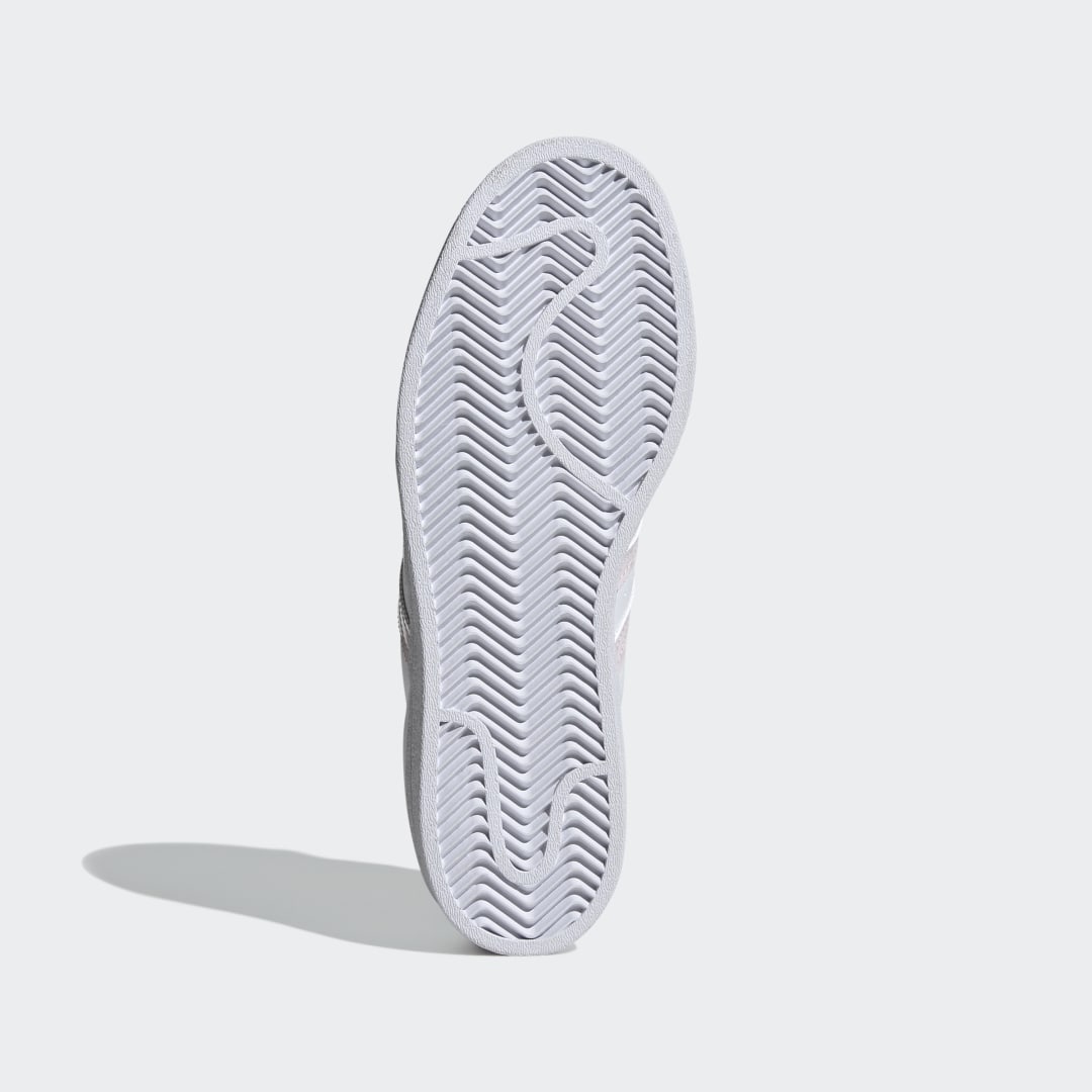 Der legendäre adidas Superstar feierte sein Debüt in den 80ern und ist aus der Streetwearszene nicht mehr wegzudenken, seitdem er zum Liebling der Hip-Hop-Stars wurde. Mit diesem Sneaker für Kinder und Teens startest auch du voll durch. Diese Version kommt mit Akzenten aus Lackleder und sorgt so für einen stylishen Touch. Und natürlich dürfen auch alle klassischen Elemente des Originals wie die gezackten 3-Streifen, das farbige Detail im Fersenbereich und die berühmte Zehenkappe aus Gummi nicht fehlen – und zwar in Kombi mit einem minimalistischen Obermaterial in Weiß. Wow, echt stylo!Das Obermaterial besteht zu mindestens 50 % aus recycelten Materialien. Dieses Produkt ist nur eine unserer Lösungen im Kampf gegen Plastikmüll.