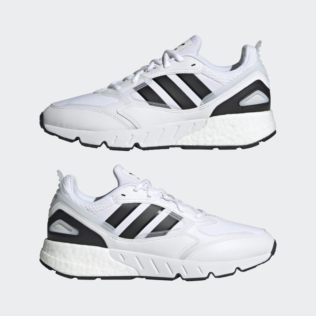 Willkommen in der wunderbaren Welt des ZX, wo Komfort und Technologie aufeinandertreffen. Dieser adidas ZX 1K Boost 2.0 Schuh ist von Laufschuhen aus unseren Archiven inspiriert und kommt mit einem futuristischen Look aus Mesh und transparenten Overlays. Die Kombi aus Boost und EVA macht das Design perfekt und sorgt für Tragekomfort pur.Das Obermaterial besteht zu mindestens 50 % aus recycelten Materialien. Dieses Produkt ist nur eine unserer Lösungen im Kampf gegen Plastikmüll.