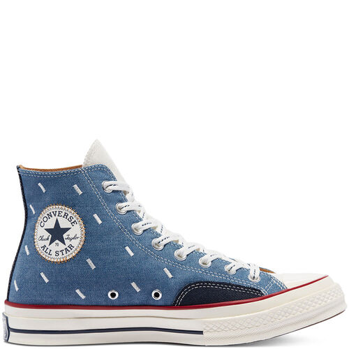 MEISTERLICHE HANDWERKSKUNST TRIFFT AUF GEFLICKTES DENIM. Inspiriert von der japanischen Denim-Reparaturtechnik – auch Boro genannt – haben wir den besten Chuck 70 mit hochwertigen Patchwork-Designs aktualisiert. Kontrastierende Stickereien und Nähte in Kombination mit mehrfarbigem Denim sorgt für einen auffälligen, unerwarteten Look. Der Chuck 70 vereint die besten Details aus dem Chuck der 70er-Jahre mit makelloser Handwerkskunst und hochwertigen Materialien. Eine aufgewertete Style-Ikone mit einer zusätzlichen Dämpfung für gutes Aussehen und Tragekomfort über den ganzen Tag. Produktinformationen High Top Sneaker aus Patchwork-Denim. Optimierte Dämpfung für ganztägigen Tragekomfort und Halt. Traditionelle Details wie ein Fersenlogo aus den 1970ern erinnern an sein Vermächtnis. Legendärer Chuck-Taylor-Knöchelaufnäher.