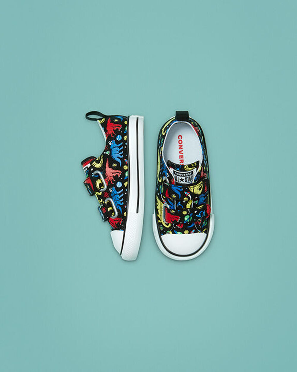 SAURIERSTARK Wenn dein Kind Dinosaurier mag, wird es diese Chucks lieben. Diese weichen und bequemen Sneaker mit farbigen Dino-Prints werden auf dem Spielplatz alle Blicke auf sich ziehen. Produktinformationen Low-Top-Sneaker aus Segeltuch mit Klettverschluss. SmartFOAM-Innensohle für Polsterung. Durchgehende Dino-Prints in Primärfarben. Weiches Futter für Tragekomfort. Gewebtes Zungenetikett und Nummernschild.