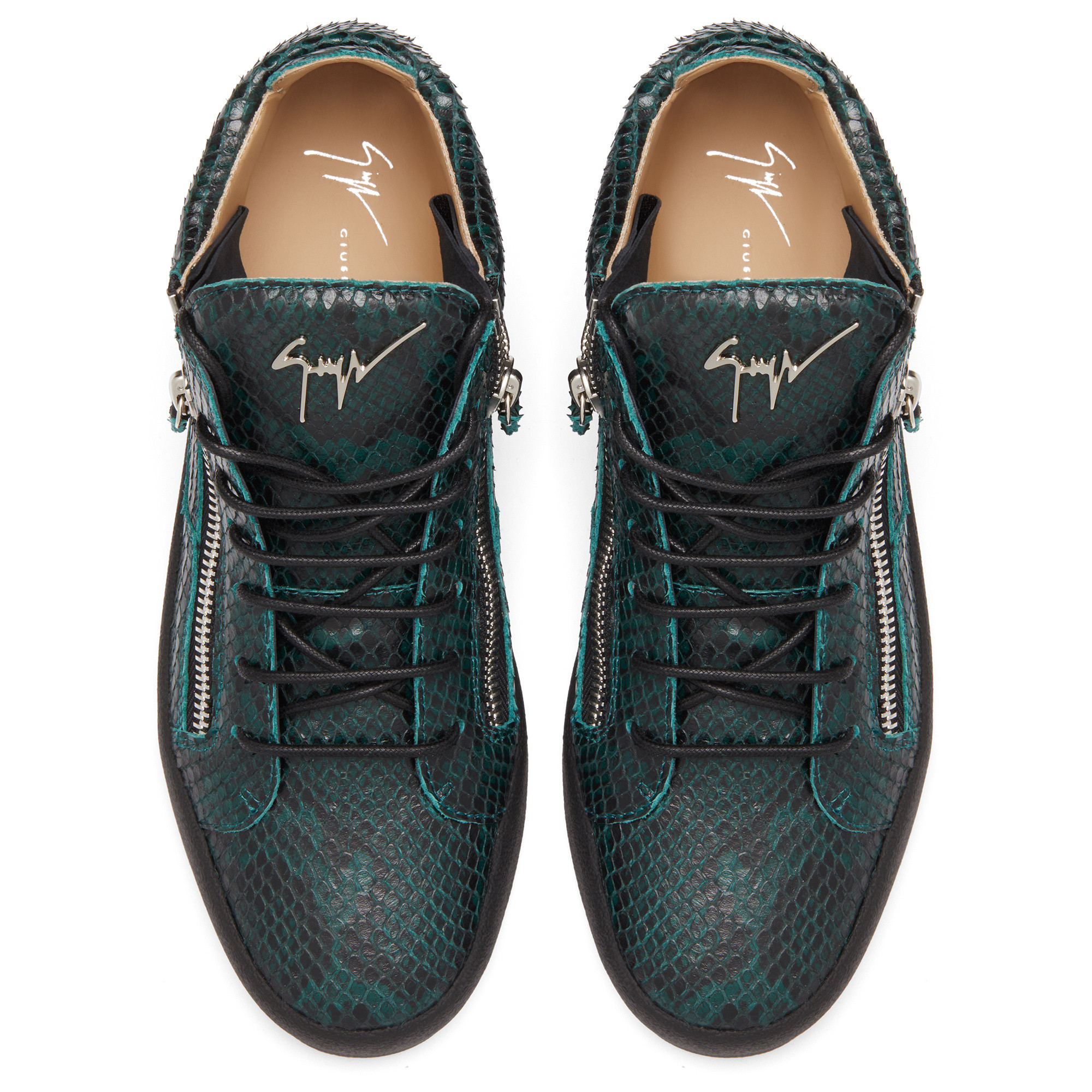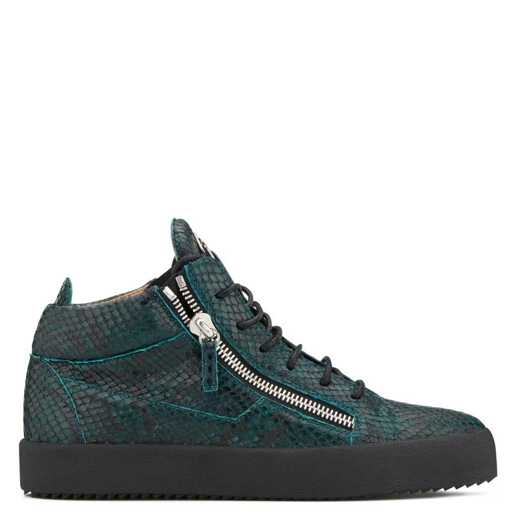 These low-top, army green reptile print leather sneakers feature a silver side zipper with a tab in matching colour and shearling inner lining. The design is completed by the Signature label, and is set on a rubber sole with logo.