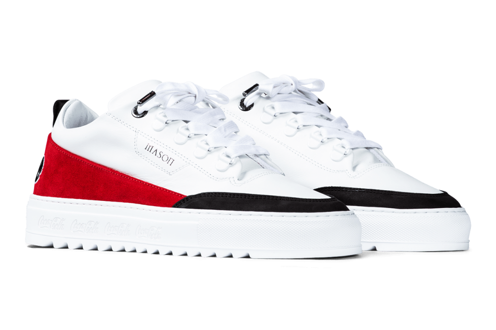 The very exclusive Mason Garments x Coca-Cola collection consist of three colorways of our popular Torino silhouette. The red colorway is made from a suede and smooth grain calf leather upper. Embroidered ?90s Coke logo on the heel cap. Lasered Coca-Cola logo on white shark teeth outsole. Gun metal stamped MASON logo on side panel. Criss cross lace technique. Leather and mesh lining. Tonal gun metal tipped laces. Tonal hardware. Gun metal logo stamped patch at tongue. Black calf leather puller with gun metal stitched M logo.Limited to 350 pairs per colorway worldwide. All hand made in Italy.