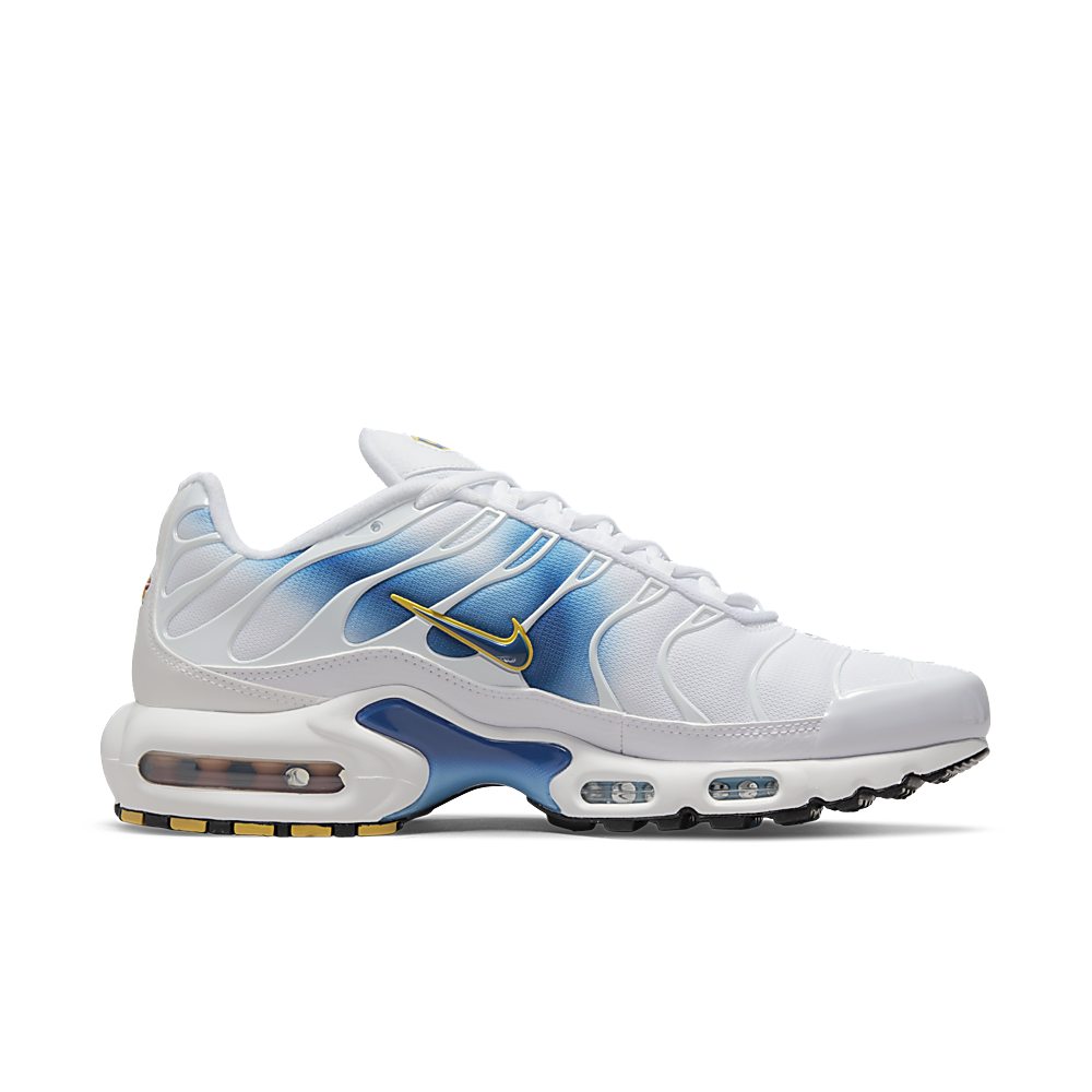 Der Stylishe Nike Air Max Plus Sorgt Mit Tuned Air Für Erstklassige Stabilität Und Unvergleichliche Dämpfung. Das Geschmeidige, Weiße Obermaterial Besticht Durch Swoosh-Logos, Die So Aussehen, Als Ob Sie Aufgesprüht Wurden. Die Atmungsaktive Konstruktion, Die Geschwungenen Designlinien Und Die Polierten Plastikakzente Kombinieren Tragekomfort Mit Frechen Style. Damit Bist Du Bereit Für Die Straße.
