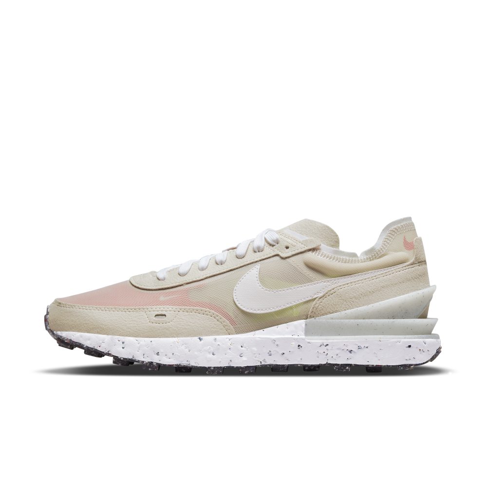 Der Nike Waffle One Crater ist ein Augenschmaus für deine Füße. Die verspielte, vom Crater-Schaumstoff inspirierte Mittelsohle versüßt den Retro-BRS-Style mit einem modernen Touch. Das Obermaterial aus mindestens 20 % recycelten Materialien sorgt für mehr Tiefe und beinhaltet transparentes Mesh, damit deine Socken zur Geltung kommen. Vorteile Der Design mit einem transparenten Obermaterial besteht aus mindestens 20 % recyceltem Material und verleiht dem Streetwear-Favoriten einen frischen Touch. Die doppelt gestapelte Mittelsohle aus Crater-Schaumstoff behält die klassische Keilform des Waffle-Franchise bei und sorgt mit einem Look mit Farbspritzern für ein tolles Tragegefühl. Nike ging aus Blue Ribbon Sports (BRS) hervor. Mit diesem traditionellen Nike Vibe bleibst du mit dem Original verbunden. Die legendäre Gummi-Außensohle aus Nike Grind mit Waffelprofil wurde mit neuen vorgeformten Stollen ergänzt, die für Halt, Traktion und Strapazierfähigkeit sorgen. Der niedrig geschnittene nahtlose Schuhkragen sorgt mit weichen Rändern für einen eleganten Look, der sich super anfühlt. Produktinformationen Das transparente Obermaterial bringt deine Socken zur Geltung. Gummi-Außensohle mit Waffelprofil Reflektierende Elemente Nicht zur Verwendung als persönliche Schutzausrüstung geeignet Das Waffelprofil Im Jahr 1971 beobachtete Nike Mitbegründer Bill Lauber seine Frau, Barbara, beim Zubereiten des Frühstücks auf einem Waffeleisen und ließ sich davon inspirieren. Er tauschte Gummi gegen Teig und die Außensohle mit Waffelprofil wurde geboren. Sie besticht nicht nur durch Traktion, Strapazierfähigkeit und traditionellen Nike Style – sie eignet sich auch ideal für den Alltag. Und das alte, rostige Waffeleisen? Nun, es ist jetzt auf einem Podest in den Nike World Headquarters zu sehen.
