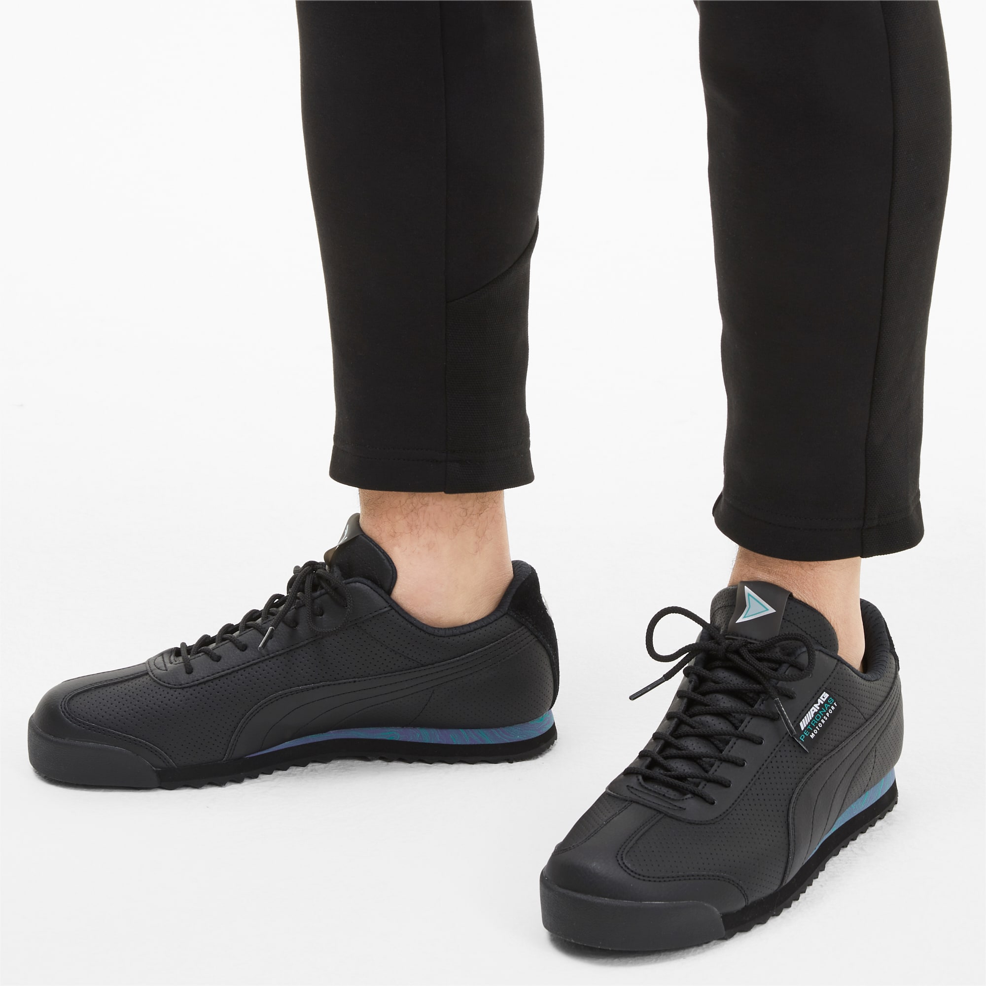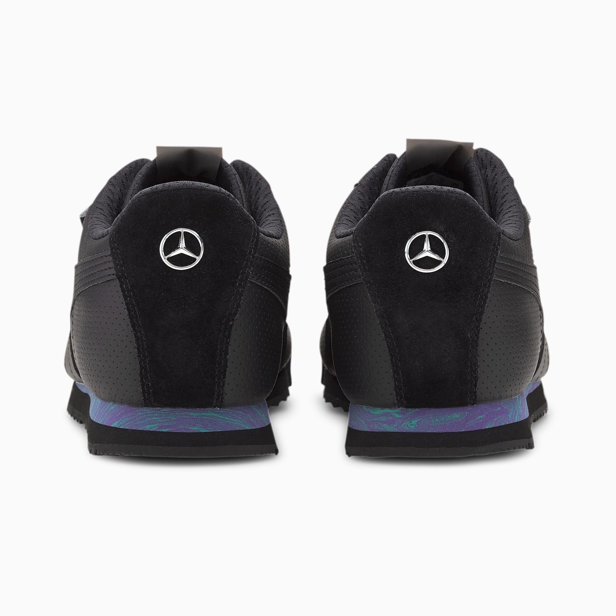 -AMG Petronas Motorsport gibt es in Form dieses raffinierten Ledersneakers jetzt auch als schnelles und dynamisches Schuhwerk. Unaufdringlich, aber unbestreitbar wirkungsvoll, drängt sich der Style von Mercedes-AMG Petronas Motorsport nie direkt in den Vordergrund. Was aber nicht heißt, dass ein Schuh wie dieser nicht sofort wahrgenommen wird. Ganz im Gegenteil. Bootie-Konstruktion Obermaterial aus Leder Griffige Gummi-Laufsohle Schuhzunge aus leichtem, atmungsaktivem Mesh Durchgehende Schnürung für einen festen Sitz PUMA Formstrip an beiden Seiten Mercedes AMG Petronas Motorsport Branding auf der Schuhaußenseite.