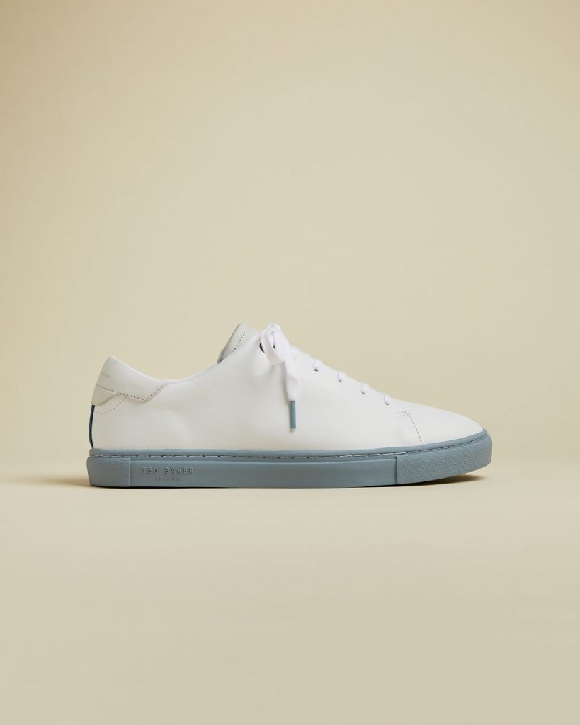Bring a pop of pastel to your footwear collection with the DARALL trainers. Crafted in fine leather, these plain trainers are upgraded with a pastel rubber sole detail and stripe on the back, a box fresh update to any gents trainer repertoire. – Ted Baker footwear collection – Leather – Stripe detail on back – Lace up – Rubber sole – Ted Baker-branded