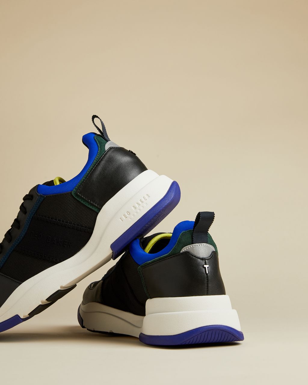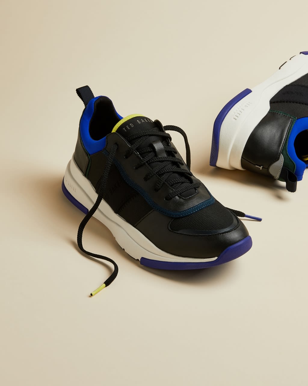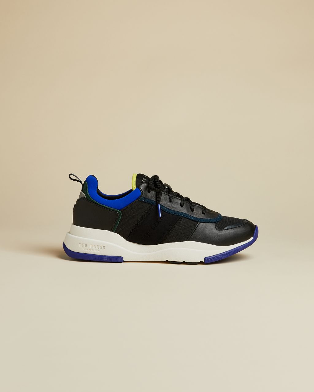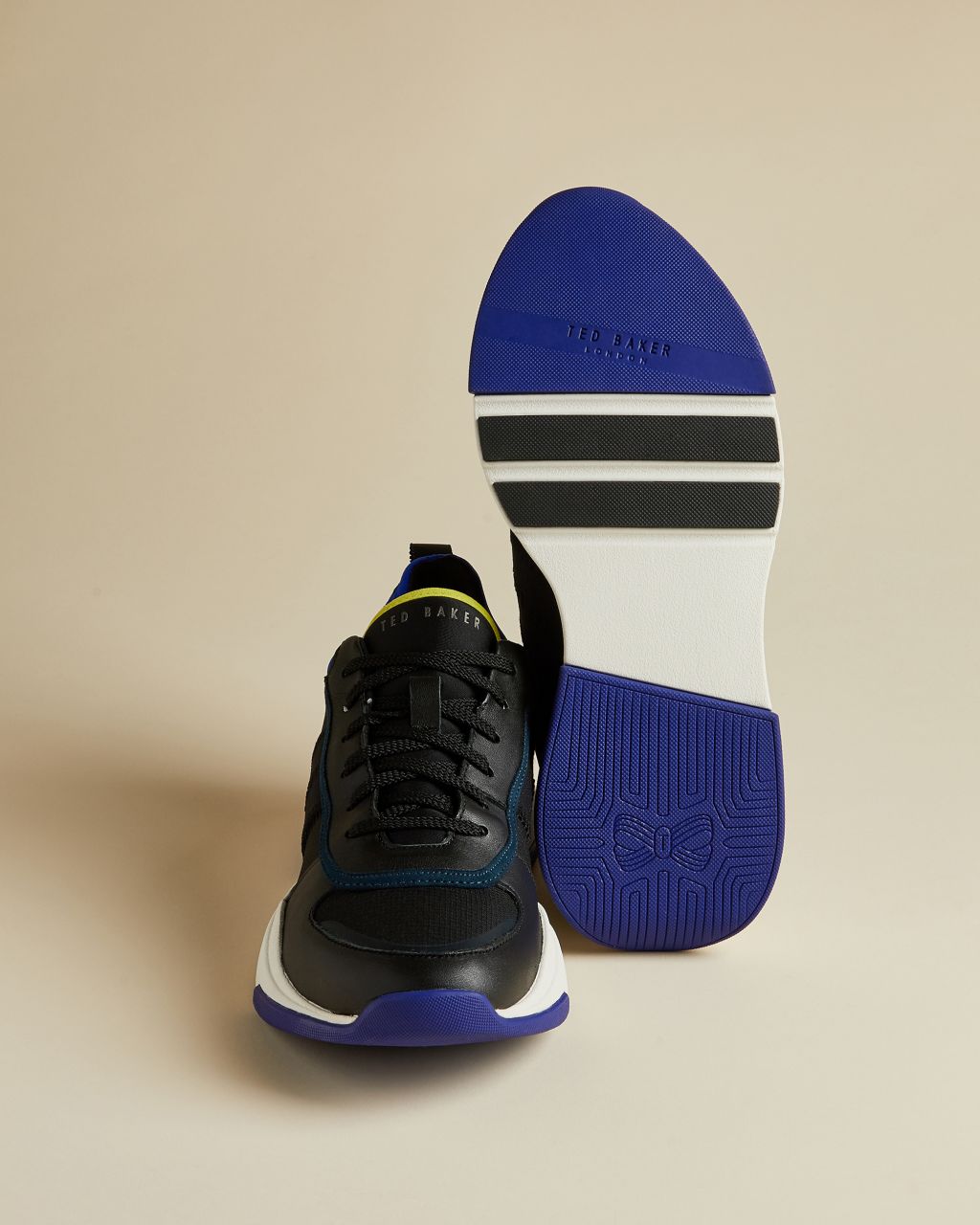 Bringen Sie etwas Farbe in Ihre Schuhkollektion mit den zeitgemäßen HEVERDI Sneakers von Ted. Die mehrlagige, hohe Sohle mit Blockfarben lässt das Paar besonders aktuell wirken und ist ein cooler Blickfang in jedem Freizeit-Looks. – Ted Baker Schuhkollektion – Hohe Sohle – Schnürung – Details in Blockfarben – Schlaufe an der Ferse – Ted Baker-Logo
