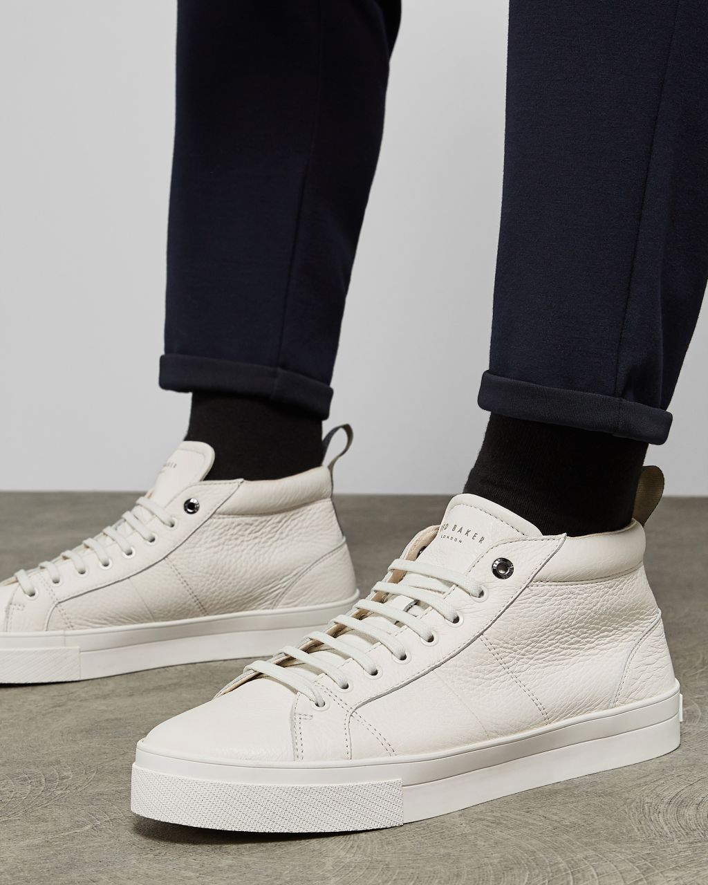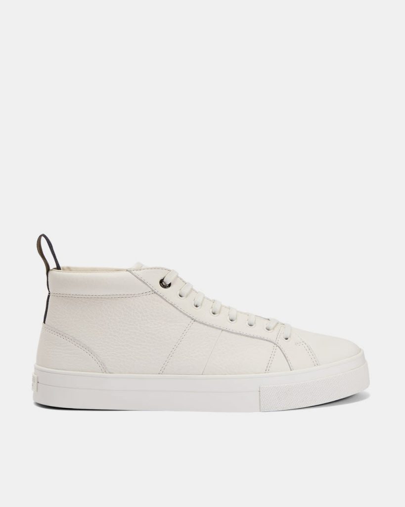 Die praktischen PERILL Sneakers von Ted runden jedes legere Outfit im Handumdrehen ab. Das schwarz-weiße Paar aus Leder eignet sich dank bequemer Gummisohle perfekt für jene, die den ganzen Tag auf den Beinen sind. – Ted Baker Schuhkollektion – Leder – Hohes Design – Gummisohle – Ted Baker Logo
